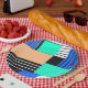 Land. ethnisch , national , ethnisch , geo , geometrisch , polygon , türkis , beige , blau , schwarz , kariert , quadrat , geometrische formen , abstrakt