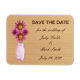 Diese schöne Rettung des Datums Magneten ist eine stilvolle, lang anhaltende Art, Ihren großen Tag zu verkünden. Personalisieren Sie den Magneten, indem Sie den Text in den angegebenen Feldern ändern. Sie können den Stil, die Größe und die Farbe des Schriftartes ändern.