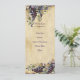 Elegante Weinkarte mit einem rustikalen Papieruntergrund und bunten lila Weintrauben. Personalisieren Sie die Weinkarte für Ihren Anlass. Ideal für Hochzeiten in einem Weingut.