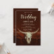 Diese rustikale ländbraune Bullenschädel Hochzeitsflachkarte lädt zu einem wunderschönen Western Rodeo Cowboy Bauernhaus Stil Design. Cooles, trendiges, altes Wildwest Vintages antikes Bauerntier. Personalisieren Sie Ihre Typografie. Bildrecht Marg Seregelyi Fotografie.