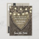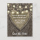 Country Rustic geschnitzte Eiche Tree Save The Date Cards - mit einem Eichenbaum Hintergrund mit geschnitztem Herz und Saitenleuchten. Sehen Sie sich die gesamte Matching-Auflistung in diesem Design unten an.