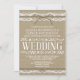 Land-Schnur-Leinwand-und Spitze-Hochzeits-Einladungen - Eigenschaften druckten Schnur, Spitze und einen Leinwandhintergrund mit Blumendekor um das Wort "Hochzeit."