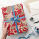Land Weihnachten rot beige braun braunes Bauernhaus Vintag rustikale Blumenmuster Geschenk Wrapping Paper. Ideal für Weihnachten und die Ferienzeit.