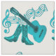 Dieses Gewebe hat eine hellblaue Gitarre und hellblauen Cowboystiefel. Es gibt Musiksymbole im Hintergrund. Dieses wird auf weißem Gewebe gezeigt, aber es kann zu jeder möglicher Farbe unter Verwendung des besonders anfertigen Knopfes und des Hintergrundfarbvorwahls geändert werden.