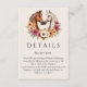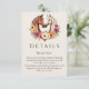 Genießen Sie Ihre Hochzeitsarbeit mit den eleganten zweiseitigen Detailkarten, die Ihr modernes Western-Thema ergänzen. Dieses elegante Landpferd-Design, das sich in einem farbenprächtigen, herzförmigen Blumenarrangement umschlingt, symbolisiert Liebe, Harmonie und Einheit - perfekt für eine Hochzeit mit rustikalem Western. Auf der einen Seite finden Sie wichtige Informationen zum Empfang, damit Sie wissen, wo Sie Ihren besonderen Tag feiern können, auf der anderen Seite finden Sie Informationen zu den Unterkünften für ein nahtloses und stressfreies Erlebnis. Diese wunderschön gestalteten Karten behielt Ihre Gäste stilvoll auf dem Laufenden.