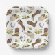 Land- und Blumenmuster mit Cowboy-Hüten, Cowboystiefeln, Hufeisen, Pferden und Blume.