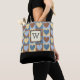 Diese Tasche ist mit einem rustikalen Landherz Muster in Blau-und Brauntönen, sowohl vorne und hinten, und kann mit einem Monogramm oder Initial Ihrer Wahl angepasst werden.
