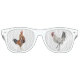 Diese komische Sonnenbrille mit den Hahnenrostern zeigt zwei atemberaubende Fotos von Heucheln auf weißem Hintergrund. Fügen Sie Ihre eigene Nachricht hinzu, um dieses Design zu Ihrem eigenen zu machen! Fotografie erstellt von der preisgekrönten Fotografin Maria Jeffs.