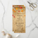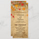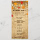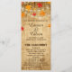 Hochzeit im Herbst für die Zeremonie mit herabfallenden Blätter und Streichellichtern über einem Holzhintergrund. Das Front- und Backdesign umfasst die Seiten Zeremonie und Hochzeitsfeier. Sie können den Text anpassen, Bilder verschieben, verkleinern oder löschen. Das passt zu einer Sammlung in meinem Geschäft.