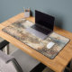 Diese Schreibtischmatte ist mit einem Landschaftsgemälde versehen, in dem sich ein Landhaus neben einem Wald befindet. Dieses Design hat eine entspannende Stimmung mit seinen sanften und gedämpften Farben.