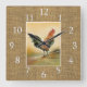 Landhaus Rustic Burlap Jute Rooster Quadratische Wanduhr