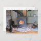 Eine glückliche Katze sitzt in der Nähe des Holzofens in Südvermont