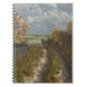 Eine Landspur schlängelt sich durch die Bäume, die in ihrem Herbstgeschoss glänzen, während sich in diesem originalen, von dem Künstler Jayne Wilson in Vue erschaffenen digitalen Kunstwerk in der sanften Brise herabfallende Blätter verwirren.