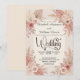 Romantisches Erröten und staubige Rose botanisches Design mit weichen neutralen Blumen, ideal für rustikale Boho-Hochzeiten im Garten und elegante Frühlings- oder Sommerzeremonien. Dieses Design spiegelt die klassische Struktur der Hochzeitspapeterie wider, wobei die Namen des Paares und das Wort "Hochzeit" in einer eleganten, fließenden Kalligrafieschrift dargestellt werden, während die Zeremoniedetails darunter in einer traditionellen Serifenschrift für Klarheit und Lesbarkeit angeordnet sind. Die Komposition zeigt ausgewogene Blumeneckarrangements mit getrockneten Palmwedeln, weichen Rosen, zartem Laub und kleinen Beerenzweigen, die das Layout umgeben. Die Farbpalette kombiniert blassrosa und staubige Rosenblüten mit warmen Beige-, Creme- und Taupe-Neutönen, um eine ruhige, romantische Atmosphäre zu schaffen, die für Boho-Hochzeiten im Garten und rustikale Chic-Feiern geeignet ist. Die botanische Kunst ist in einem weichen Aquarellstil illustriert, der den Blumen ein handgemaltes Aussehen mit san