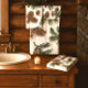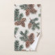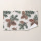 Verleihen Sie Ihrem bad im Landhausstil mit diesem Handtuch-Set einen rustikalen Touch, das ein rustikales Immergrün-Wald-Design zeigt. Das Muster enthält Kiefernzapfen auf weißem Hintergrund und ist sowohl für die Weihnachtszeit als auch für die Wintermonate geeignet.