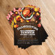 Feiern Sie die Wärme und die Zusammengehörigkeit der Saison mit diesem rustikalen Thanksgiving-Dinner-Flyer-Vorlage, das Ihre Restaurant-Veranstaltung zum unvergesslichen Ereignis macht. Mit einem reichen Holz-Hintergrund, lebendigen Herbstblättern und einem goldenen, gerösteten Truthahn als Mittelpunkt erfasst dieses Design die herzliche Essenz von Thanksgiving - Komfort, Geschmack und Familie.