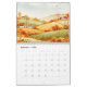 The image shows a watercolor painting, depicting a landscape of hills with small houses and trees.