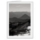 Eine Schwarz-Weiß Landschaftsfotografie von sanften Hügeln und Bergen, soweit das Auge reicht. Die Baumreihen hier und da. Und ein paar Schneeflecken gibt es noch im Frühsommer. Image Copyright ©2023 Kimberly J Tilley. www.zazzle.com/store/developingnature