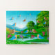 Puzzle mit Naturbildern: Vögel auf einer Wiese, durchquert von einem gewundenen Fluss und in einem von zwei Bäumen, und auch in einem Himmel gefüllt mit dem Licht der Sonne. Ich habe auch bunte rosa und violette Blumen aufgenommen. Dieses 30-teilige Puzzle eignet sich für Kinder im Alter von 4 Jahren. Sie können dieses Rätsel personalisieren, indem Sie meine Illustration durch eine Ihrer eigenen Illustrationen oder Fotos ersetzen, wenn Sie möchten.