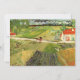 Landschaft mit Beförderung und Bahn im Hintergrund von Vincent van Gogh ist ein Vintages Post-Impressionismus Natur Landschaftsbild. Eine Landzunge mit einem Bauernhaus mit einem bäuerlichen Bauer auf den Feldern, einer Pferdekutsche und einem Zug mit Rauch aus der Ferne. Über den Künstler: Vincent Willem van Gogh (1853-1890) war einer der berühmtesten postimpressionistischen Maler seiner Zeit. Seine Arbeit war besonders für seine raue Schönheit, seine emotionale Ehrlichkeit und seine kühne Farbe bemerkenswert.