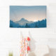 Landschaft der Berge und Kiefernwälder der Nebel ist über den Bergen