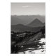 Eine Schwarz-Weiß Landschaftsfotografie von sanften Hügeln und Bergen, soweit das Auge reicht. Die Baumreihen hier und da. Und ein paar Schneeflecken gibt es noch im Frühsommer. Image Copyright ©2023 Kimberly J Tilley. www.zazzle.com/store/developingnature
