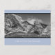 Die Landschaft von Colle della Gran San Bernardo (Grosser Heiliger Bernard) im Aostatal vereint die wilde Schönheit der italienischen Alpen in Schwarz und Weiß. Die kahlen felsigen Berge zwergen die Straße über diesen Bergpass, der die Alpen und die Grenze von Italien in die Schweiz überquert. Große Souvenirkarte Ihrer Reise nach Italien.
