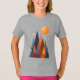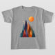 Eine Gruppe von Bergen im Hintergrund, Vektorgrafik, geometrische abstrakte Kunst, vertikale Tapeten, grün und orange Thema, Mondlicht im oberen Hintergrund, Erdfarben.