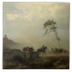 Landschaft mit Burgruinen und Reiten Fliese
