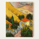 Landschaft mit Haus und Plowman. Vincent Willem van Gogh. Landschaft in leuchtend warmen Farben. Es gibt ein Haus mit rotem Dach an der Straße. Gelbe Felder gehen die Hügel hinauf. Auf dem Feld erntet ein Mann mit einem Pferd. Reproduktion berühmter Kunstbilder im öffentlichen Bereich.