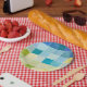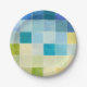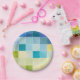Landschaft mit mehrfarbigen, pixeligen Quadraten Pappteller