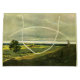 Dieses Design zeigt ein Gemälde des deutschen Romantik-Künstlers Caspar David Friedrich aus dem 19. Jahrhundert (1774-1840). Es zeigt eine schöne Landschaft in der Landschaft Deutschlands. Es gibt Grünflächen, Bäume und Bauernhäuser auf dem Land. Der Himmel ist bewölkt, vielleicht weil es vor kurzem einen Sturm gab, aber es gibt einen großen Regenbogen vor den Wolken. Im Vordergrund ist ein Mann stehend auf einem Hügel; er schätzt die Schönheit des Regenbogens. Das Originalwerk wurde 1810 von Caspar David Friedrich gemalt.