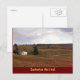 Passen Sie diese Postkarte an! Eine wunderschöne Landschaft, eine Wiese mit einer weißen Zuhause, die von Kiefern beschattet wird, und große, wirbelnde Wolken. Fotografie von Minerva Bloom