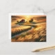 Tauchen Sie ein in den friedlichen Charme der Landschaft. Diese Postkarte erfasst sanfte Felder von goldenem Weizen, die sanft in der Brise schweben. Ein malerisches Bauernhaus mit rotem Dach liegt inmitten von Wildblumen und führt durch einen kurvenreichen, schmutzigen Weg dorthin. Die untergehende Sonne strahlt die Landschaft in warmen Orange- und Rosatönen aus und schafft so eine ruhige, idyllische Szene. Ideal für Liebhaber der Landschaft, für Naturliebhaber und für diejenigen, die die ländliche Schönheit suchen.