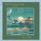 Landschaftsszene Pagode und Kranich in aquamarinen und goldenen Farbtönen.
