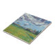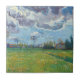 Landschaft unter einem stürmischen Himmel. Vincent van Gogh. Niedliche Sommerlandschaft. Sturm auf dem Feld. Grosser grüner Boden mit rotem Tetami. Im Hintergrund sind Bäume. Wolken laufen über den blauen Himmel. Reproduktion berühmter Kunstbilder im öffentlichen Bereich.