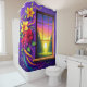 Dieser Duschvorhang hat einen Blick auf das Fenster.