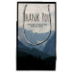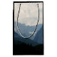 Geschenktasche mit Foto von schönen Bergen, bewölktem Himmel und sanften Hügeln mit Bäumen im Vordergrund. Graublau.