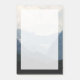 Sticky Notizen mit einem Foto von schönen Bergen, bewölkter Himmel, und rollende Hügel gefüllt mit Bäumen im Vordergrund. Graublau.