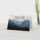 Vielen Dank Karte mit einem Foto von schönen Bergen, bewölkter Himmel, und rollende Hügel gefüllt mit Bäumen im Vordergrund. Graublau.