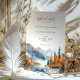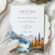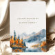 Mit dieser atemberaubenden "Save the Date"-Karte, die eine atemberaubende Aquarelllandschaft beherbergt, die den Herbst in den Bergen so schön wie möglich erscheinen lässt, verkünden Sie Ihre Hochzeit. Das Kunstwerk zeigt majestätische, schmucke Berge mit schneebedeckten Gipfeln in Blautönen und überblickt einen ruhigen See, der die lebendige Landschaft wunderbar widerspiegelt. Die Küste ist abgewürfelt von den brillanten Farben des Herbstes - feurige Orangen, goldene Gelbtönen und rostige Rottöne, die wahrscheinlich von Laubbäumen wie Aspen oder Birch mit ihren charakteristischen, schlanken weißen Stämmen stammen, die wunderschön kontrastiert sind von tief blau-grünen immergrünen Kiefern. Der sanfte, evokative Aquarellstil verleiht dem Ambiente eine Touch von Romantik und Ruhe. Elegante Typografie ergänzt das atemberaubende Kunstwerk und macht diese Karte perfekt für Paare, die eine Hochzeit im Herbst planen, eine Bergfeier veranstalten oder die die Schönheit der Natur sehr schätzen.