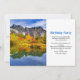 Eine Geburtstagseinladung mit einem schönen Foto. Steinberge mit einem Herbstwald in kräftigen Farben. Ein ruhiger See reflektiert die Berge, Bäume und Gräser.