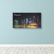 Ein landschaftliches Stadtbild. Die Singapore Skyline am Abend mit vielen hochglanzvollen Gebäude, die hell erleuchtet sind mit ihren farbenfrohen Reflektionen, die das malerische Ufer entlang des Flusses Singapur erhellen.