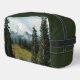 Zippered Dopp Kit Toilettentasche, die ein landschaftliches, landschaftliches Foto-Image von schneebedeckten Berg Rainier und subalpine Landschaft mit immergrünen Bäumen, zusammen mit einem soliden, dunkelgrünen Top und Seiten. Perfektes Accessoire für Ihre Toilettenartikel für unterwegs!
