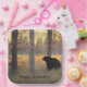 Die Teller der Geburtstagsparty zeigen einen schwarzen Bären in einem landschaftlichen Wald. Ideal für Wanderer, Jäger, Tier- und Naturliebhaber.