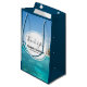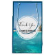Wir bedanken uns bei Ihnen für die Geschenktasche mit einem schönen Foto mit einem tropischen Badeort. Hübsches blaues Wasser und weißer Sandstrand mit Strohhütten geben ihm eine ruhige Inselatmosphäre. Ein weißer Kreis, oben mit dem Text, der sich darin befindet.