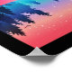 Ein Poster mit einem schönen grafischen Design mit einem friedlichen See mit Reh. und hohen Kiefern, die sich im Wasser widerspiegeln. Sterne schweben über.
