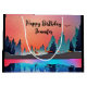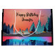 Eine Geschenktasche mit einem schönen grafischen Design mit einem friedlichen See mit Reh. und hohen Kiefern, die sich im Wasser widerspiegeln. Sterne schweben über.
