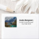 Adressetiketten mit einem schönen Naturfoto. Mit schneebedeckten Bergen und ruhigen Teichen, eingebettet in das Tal dieser majestätischen Berge.