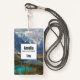 Benennen Sie Abzeichen mit einem schönen Naturfoto. Mit schneebedeckten Bergen und ruhigen Teichen, eingebettet in das Tal dieser majestätischen Berge.